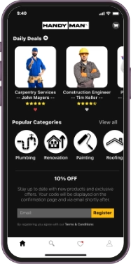 The user apps come with impeccable features that help provide convenient handyman service experiences.