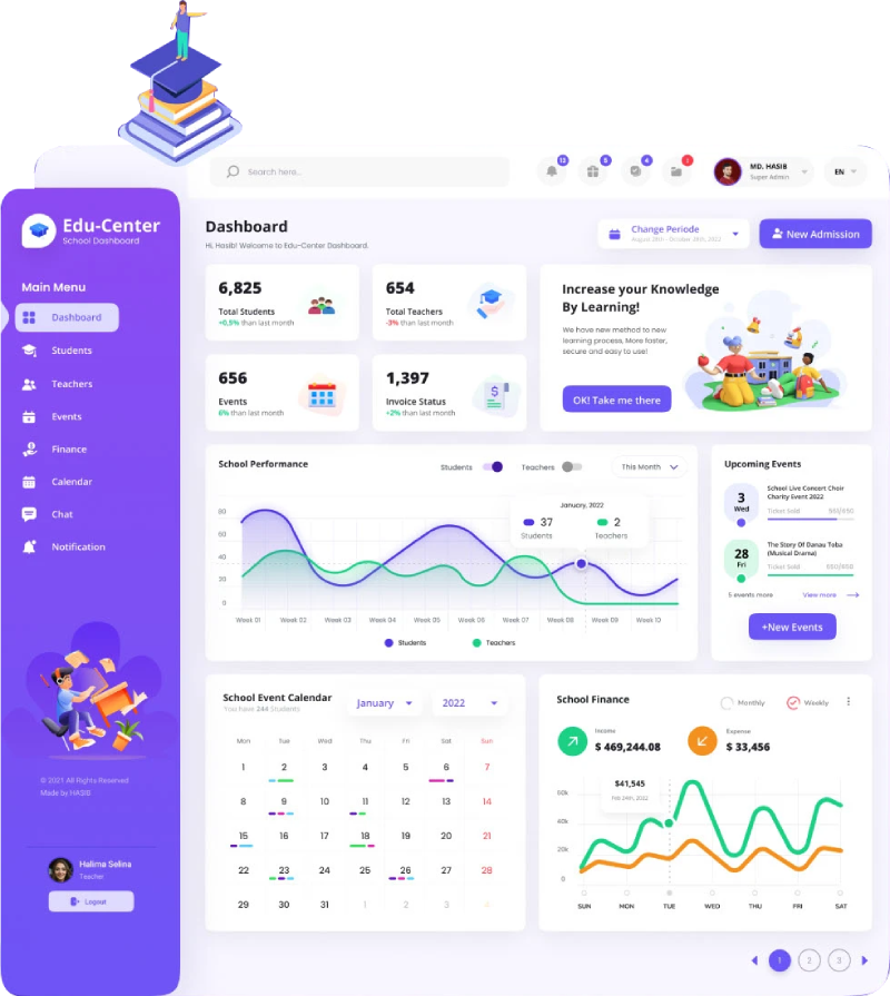 Create and launch your own school management software program under your brand name. Our white label school management software enables you to offer a ready-made, fully customizable solution to schools, colleges, and universities. Add your brand, choose your layout, and set your pricing. With a faster deployment and cost-effective software solution, introduce an innovative, secure, and easy-to-use platform into the market for the management of daily school duties.