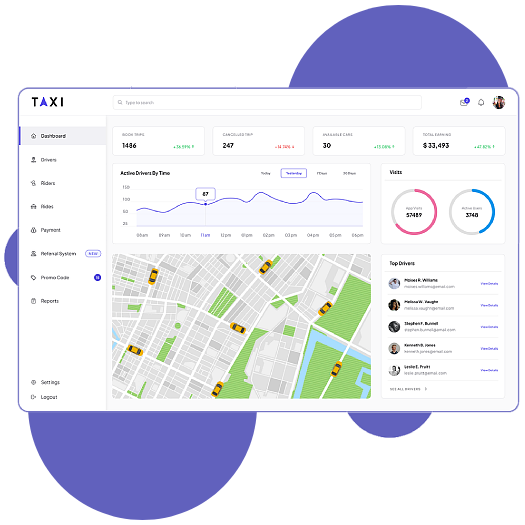 Turn your vision into reality with an Uber-like app's advanced technological platform. It includes three key stakeholders: drivers, administrators, and passengers. Learn more about them below-